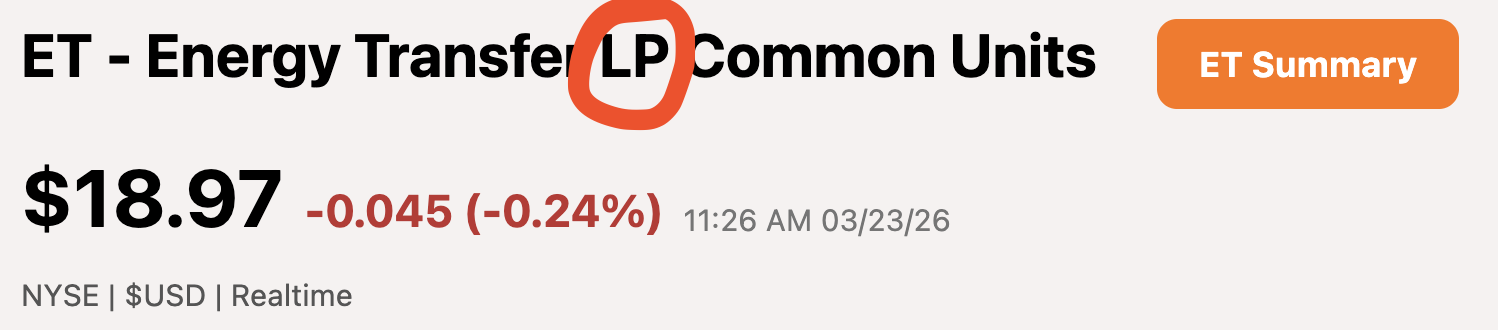 Deze aandelen zijn vaak te herkennen aan de term LP of MLP in de naam van het aandeel, zoals bijvoorbeeld bij Energy Transfer (ET).
